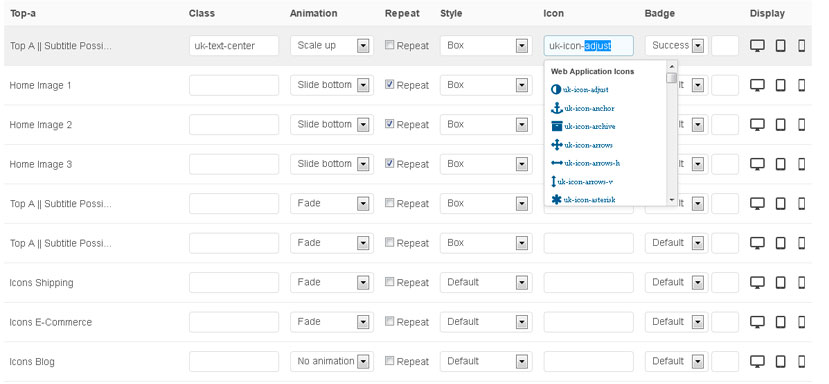 This theme comes with different module styles, badges and icons. For each module you can pick a style and combine it with an icon or badge to create your own unique look. Here is a list of the available options:
